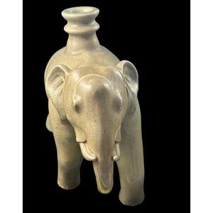 Vintage Thai Celadon Matte Gray Crackled Glaze Elephant Faux Water Pitcher Statue Large 8.5"x11"x5". Please see photos for additional information and item particulars.