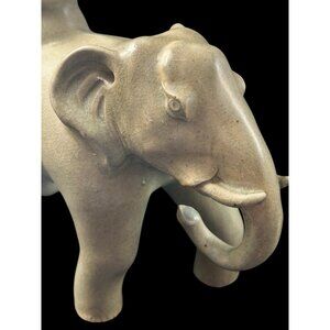 Vintage Thai Celadon Matte Gray Crackled Glaze Elephant Statue Large 8.5"x11"x5"