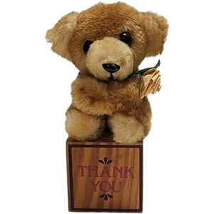 Vintage 1980's Thank you Bear on a block by Paula tiny plush stuffed animal bear holding a Rose. Great Vintage condition. Please see all pictures for details, measurements, and condition