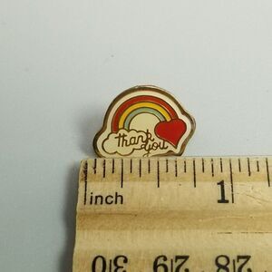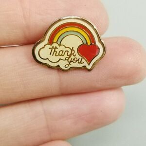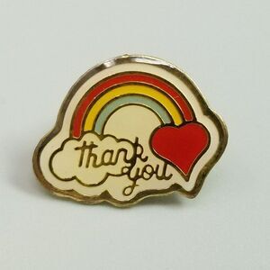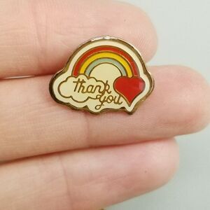 Vintage Thank You Rainbow Heart Enamel Lapel Pin, Retro 80s Style Brooch