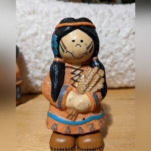 Vintage Thanksgiving candle set Native people and PILLgrams. Grest shape color really pops never burned. unmarked not sure of manufacture. As is condition