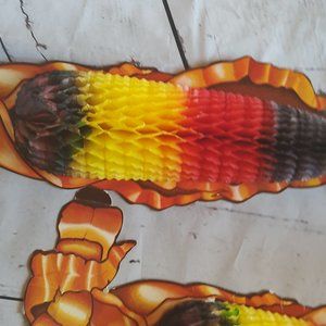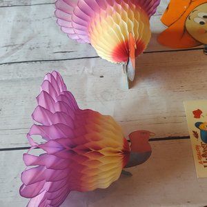 Vintage Thanksgiving cardboard cutout honeycomb decorations turkey scarecrows