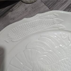 large, off-white, vintage Thanksgiving turkey platter, made in Italy. Key details include: