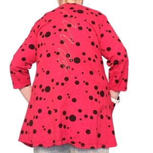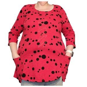 Vintage The Added Touch Top XL Wearable Art Red Circles Tunic Pockets USA