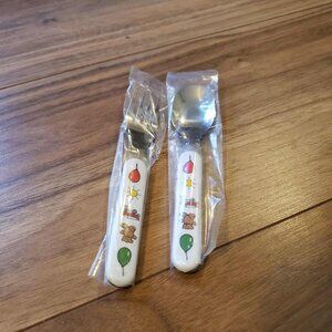This vintage The Bear House 5-piece dinnerware set is a charming find for collectors or for use with little ones. Designed for children and toddlers, it includes a divided plate, bowl, cup, fork, and spoon — perfect for encouraging self-feeding and independence at mealtime.