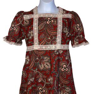 Vintage The Beaux Age Dress Girls 14 Fall Paisley Union Made 90s Floral Prairie