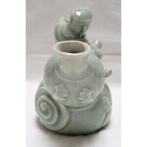 Vintage The Bombay Company Jade Green Porcelain Yin Yang Monkey Riding Teapot
