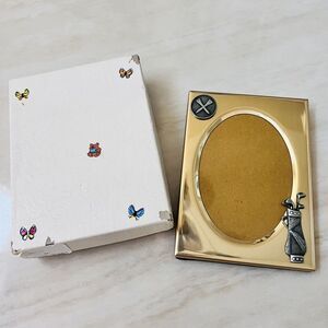 Vintage The Castriota Collection Picture Frame Golf Clubs Gold Tone Metal 3.5x5”