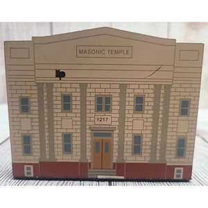 Vintage The Cat's Meow Village Series XII Wooden Masonic Temple Shelf Decor 5"