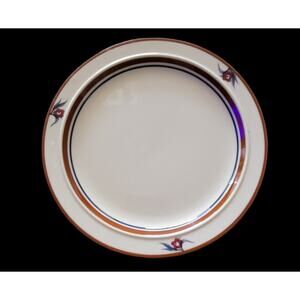 Rust and blue interior color strips before the center of the plate.
