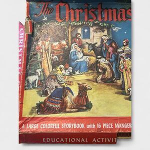 A charming mid-century retelling of the Christmas story, featuring vintage illustrations and timeless text. A lovely addition to any holiday book collection or nostalgic display. With original box.