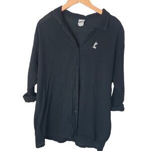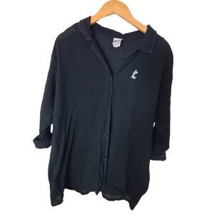 Vintage The Disney Catalog Black Crepe Button Down Top Mickey Mouse Size S/M