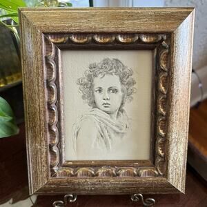 Vintage The Divine Shepherd by Bartolomé Esteban Murillo Framed Pencil Drawing