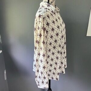 Vintage The Fire Islander women white red & gray patterned button up blouse