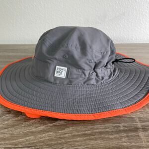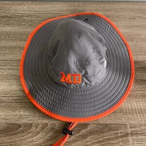 The Game MD Gray Orange Wide Brim Sun Hat Adjustable Chin Strap One Size Vintage