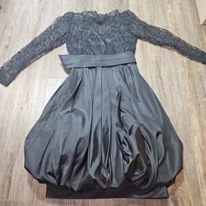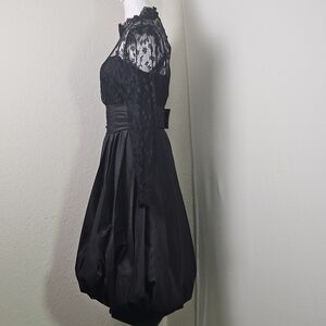 Vintage The Gilberts for Tally NY Black Lace & Taffeta Bubble Hem Cocktail Dress