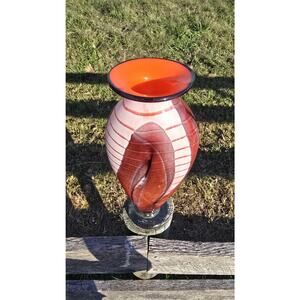Vintage The Glass Forge Art Glass Vase Red Orange Signed 2002 Hand Blown USA