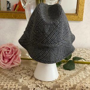 Bucket Hat with shades of blue, gray and black hounds tooth.