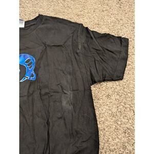 Men's graphic t-shirt in black featuring a large Hitchhiker's Guide to the Galaxy graphic on the back in good condition. Please note there is some discoloration on the shirt as pictured