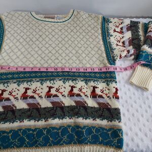 Vintage The Import Workshop Sweater Acrylic Blend Knit Fair Isle Crewneck Turkey size medium. Emu? Ostrich? Turkey? Wildlife Bird.
