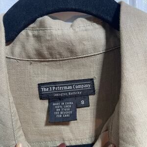 Vintage The J. Peterman Company 100% Linen Midi Dress Button Front Women's 8