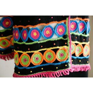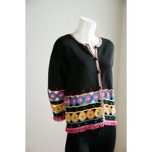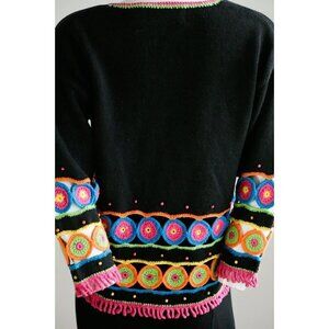 Vintage The Last Best Place Crochet Granny Squares Detail Wool Cotton Cardigan S.
