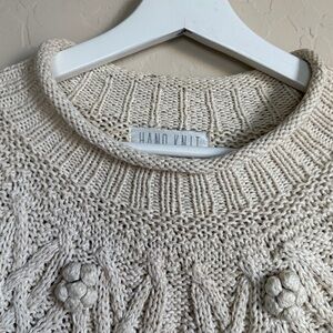 Vintage The Limited Hand Knit Cableknit Turtleneck Oatmeal Cream Sweater Leave Floral Small