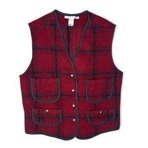 Vintage The Limited Red Plaid Wool Blend Vest Women’s Size M Snap Button Pockets