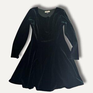 Step into timeless elegance with this vintage The Limited velvet dress in a classic deep black. Made from plush velvet, it features a flattering fit-and-flare silhouette, scoop neckline, and long sleeves—perfect for cooler seasons or special evenings out. The swing skirt adds movement and grace, making it a versatile piece for both holiday gatherings and date nights.