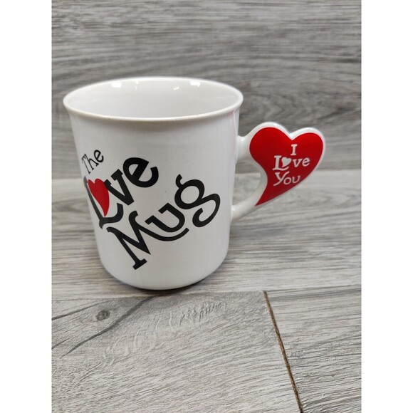 Vintage The Love Mug Cup Red Heart Shaped I Love You Handle-Cute