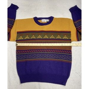 Vintage The Mens Store at Sears Aztec Tribal Grandpa Knit Sweater Size Medium. Please see pictures for condition and measurements for proper sizing and fit.