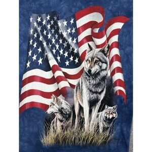 Vintage The Mountain Shirt Men’s Sz M Blue Tie Dye Wolf Wolves USA American Flag