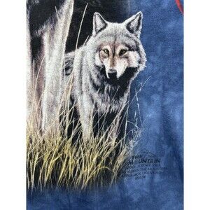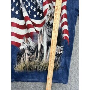 Vintage The Mountain Shirt Mens Sz M Blue Tie Dye Wolf Wolves USA American Flag