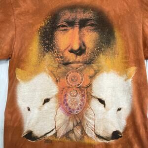 Vintage The Mountain Short Sleeve Tie Dye Native American Wolf Cotton T-Shirt
