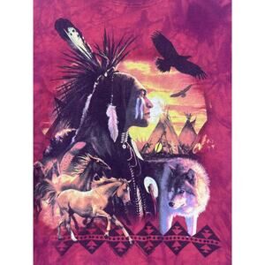 Vintage The Mountain T Shirt Kids Medium Red American Indian Wolves Horses 2001?
