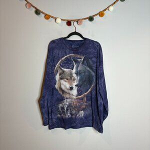 Vintage The Mountain blue tie dye Wolf long sleeve tee