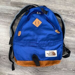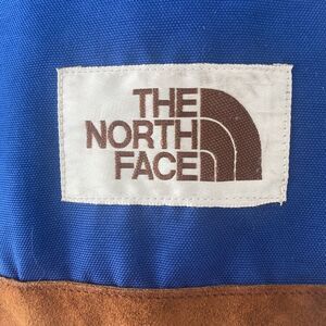 Vintage The North Face Blue Brown Backpack Suede Bottom Panel Retro Design
