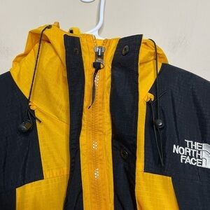 Wear on drawstring cords. Missing bottom button. Inside pocket is missing zipper pull. Some marks on fabric.