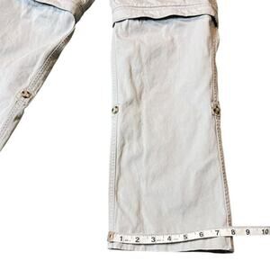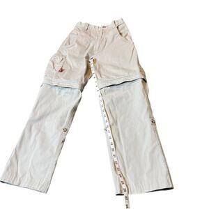 Size XXS NOT XS!!!!Excellent preowned condition very well taken are of Approximate measurements in photos taken laying g fall without stretching the item 3 way Convertible cargo pant. Wear them long, roll them up to capris or turn them into shorts! Two front pockets, one side pocket and one back pocket button/ zip closure side leg 100% cotton. Color light tan SIZE: XXS
