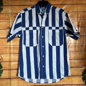 Vintage "The Nutter" Striped Short Sleeve Button Up Blue Shirt Size Small