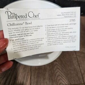 Vintage The Pampered Chef "Chillzanne Bowl" White plastic serving bowl w/lid