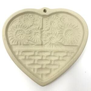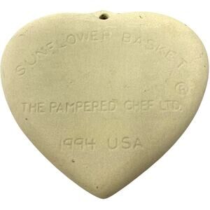 This charming vintage heart-shaped cookie mold by The Pampered Chef features the “Sunflower Basket” design from 1994, made in the USA in durable stoneware. Ideal for making shortbread, cookies, or even using as decorative wall hanging or kitchen accent.