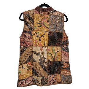 Vintage The Planet earth tone mixed print patchwork button up sleeveless top in great condition 36" bust 28" long