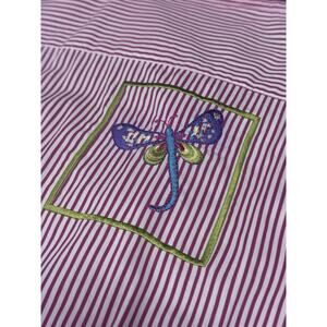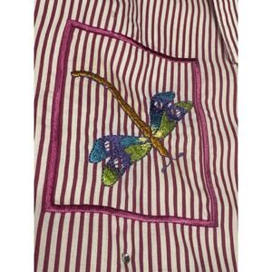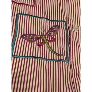 Vintage The Quacker Factory M Red White Stripe Dragonflies Short Sleeve Shirt