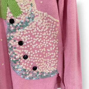 Vintage The Quacker Factory Sweater Light Pink Snowman Sequins Womens Medium