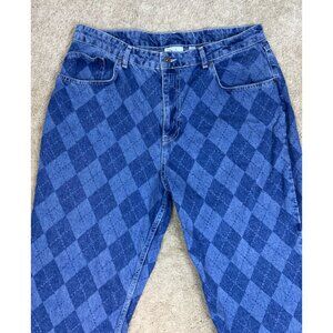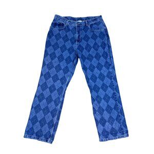 Vintage The Ragged Priest Jeans Blue Argyle Pattern Straight-Leg Denim 36X30