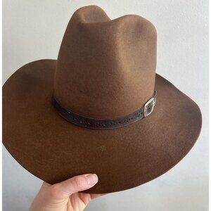 Vintage The Round Up 5X Beaver 5 XXXXX Brand Cowboy Hat Brown Buckle Western