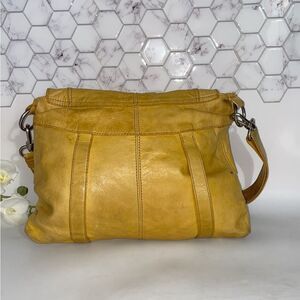 Stylish vintage The Sak antique gold leather shoulder crossbody bag perfect for any occasion. Features a spacious interior and durable design.