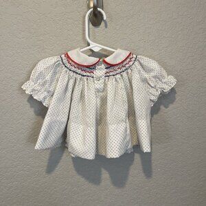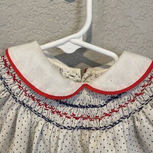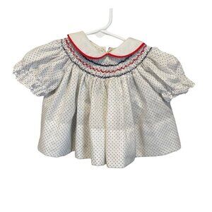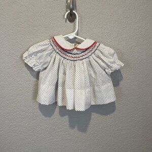 Vintage The Smockery Red White Polka Dot Smocked Dress Size Puff Sleeves 3-6M