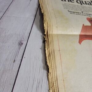 Newspaper shows signs of aging, but overall still a great piece. See pictures for more details on condition.
